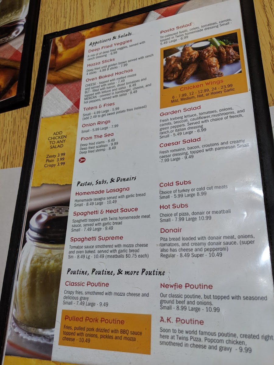 Welcome to Twins Pizza/Kaboodles, a cozy culinary gem nestled in Minto, NB. This charming eatery offers a diverse menu that caters to all cravings, from appetizers like deep-fried veggies and mozza sticks to hearty pastas, subs, and donairs. Notably, their donair pizza and homemade lasagna have received rave reviews, highlighting generous portion sizes and delightful flavors.